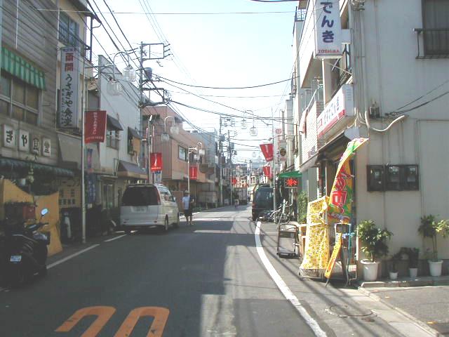 大正から昭和にかけての急激な町の発展に伴い、不忍池にそそぐ谷田川(逢初川)が 埋められ暗渠となった場所が現在のよみせ通りです。この通りはちょうど区境にあたり、 東側(写真右側)が台東区谷中、西側が文京区千駄木となっています。